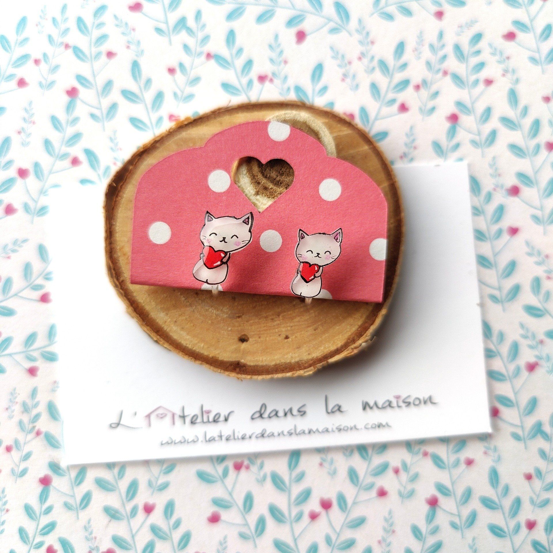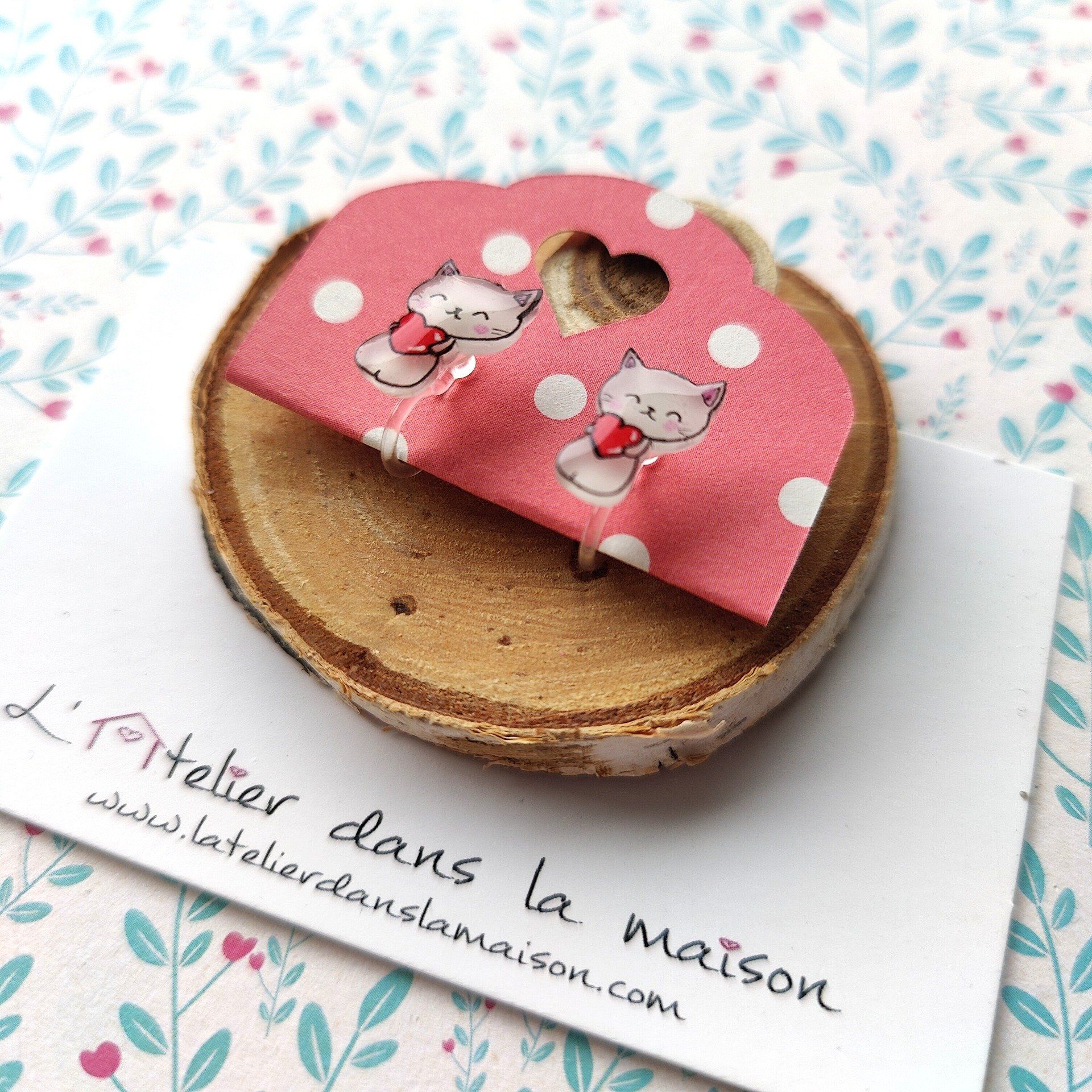 Boucles d'oreilles avec ou sans perçage chat coeur