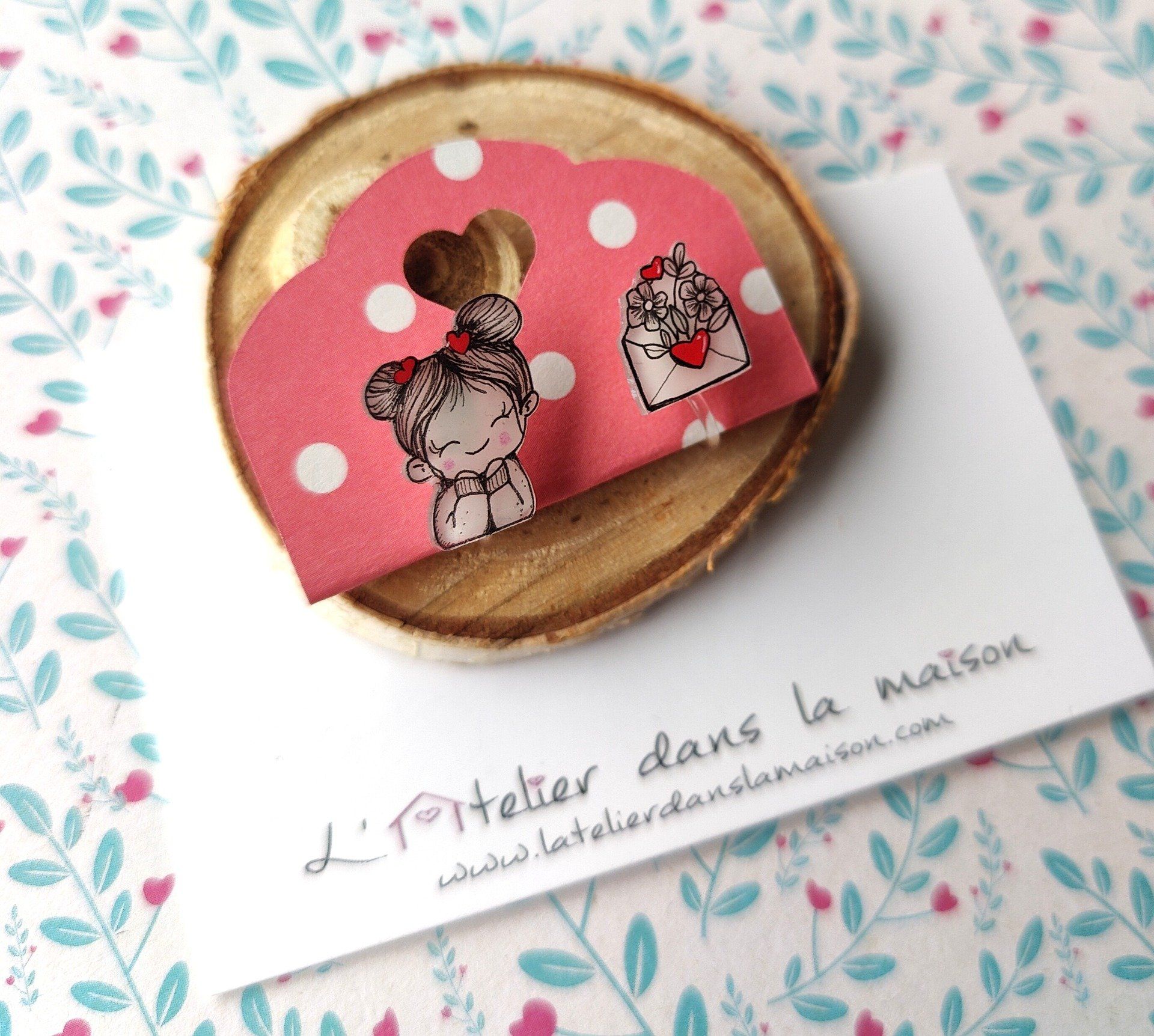 Ces petits clous sont composés d'une petite fille rêveuse d'un côté et d'une lettre fleurie de l'autre !