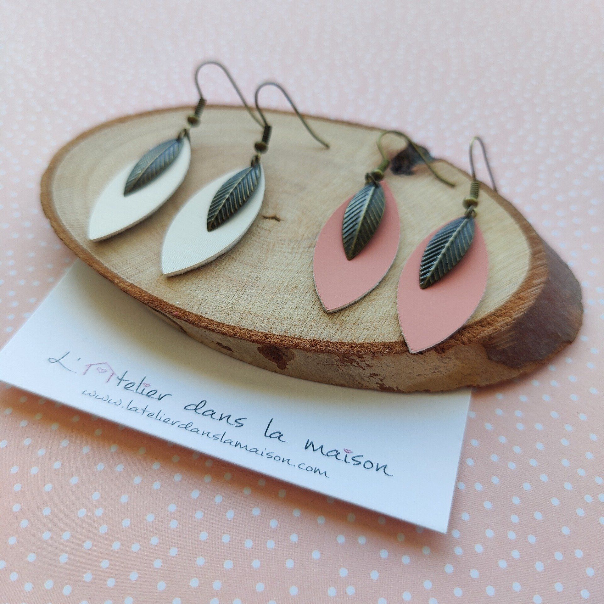 Boucles d'oreilles en simili cuir blanc ou corail
