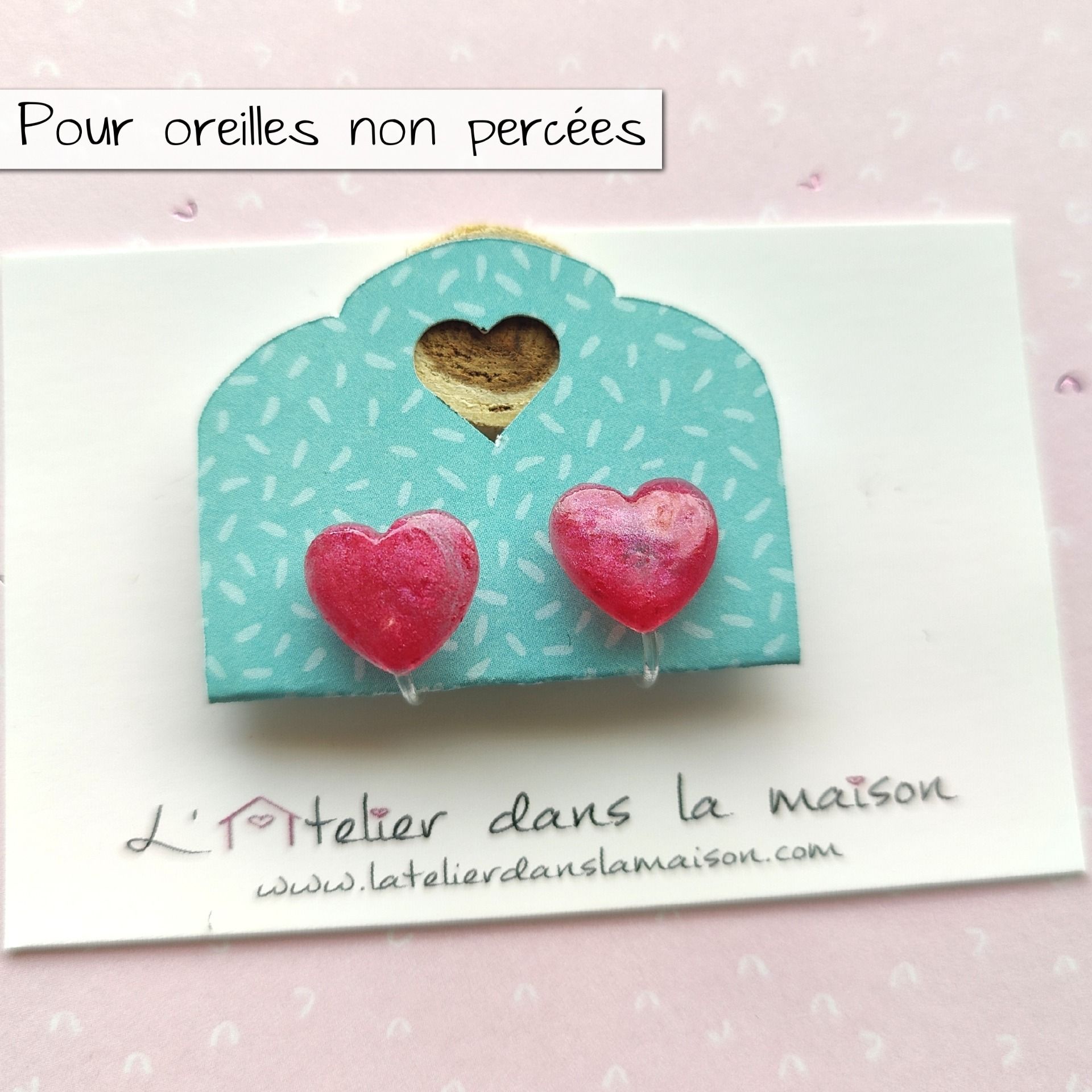 Boucles d'oreilles sans perçage coeurs roses