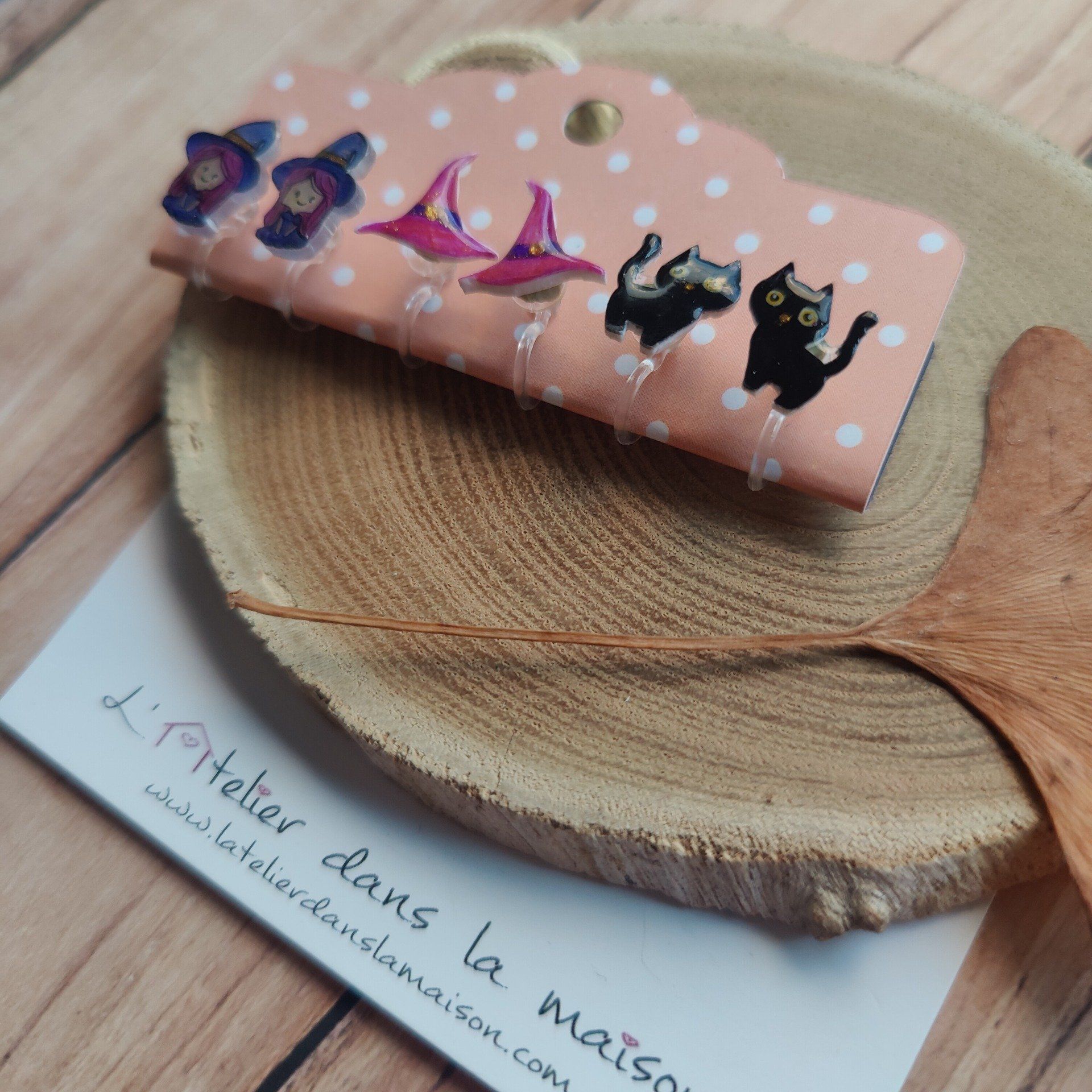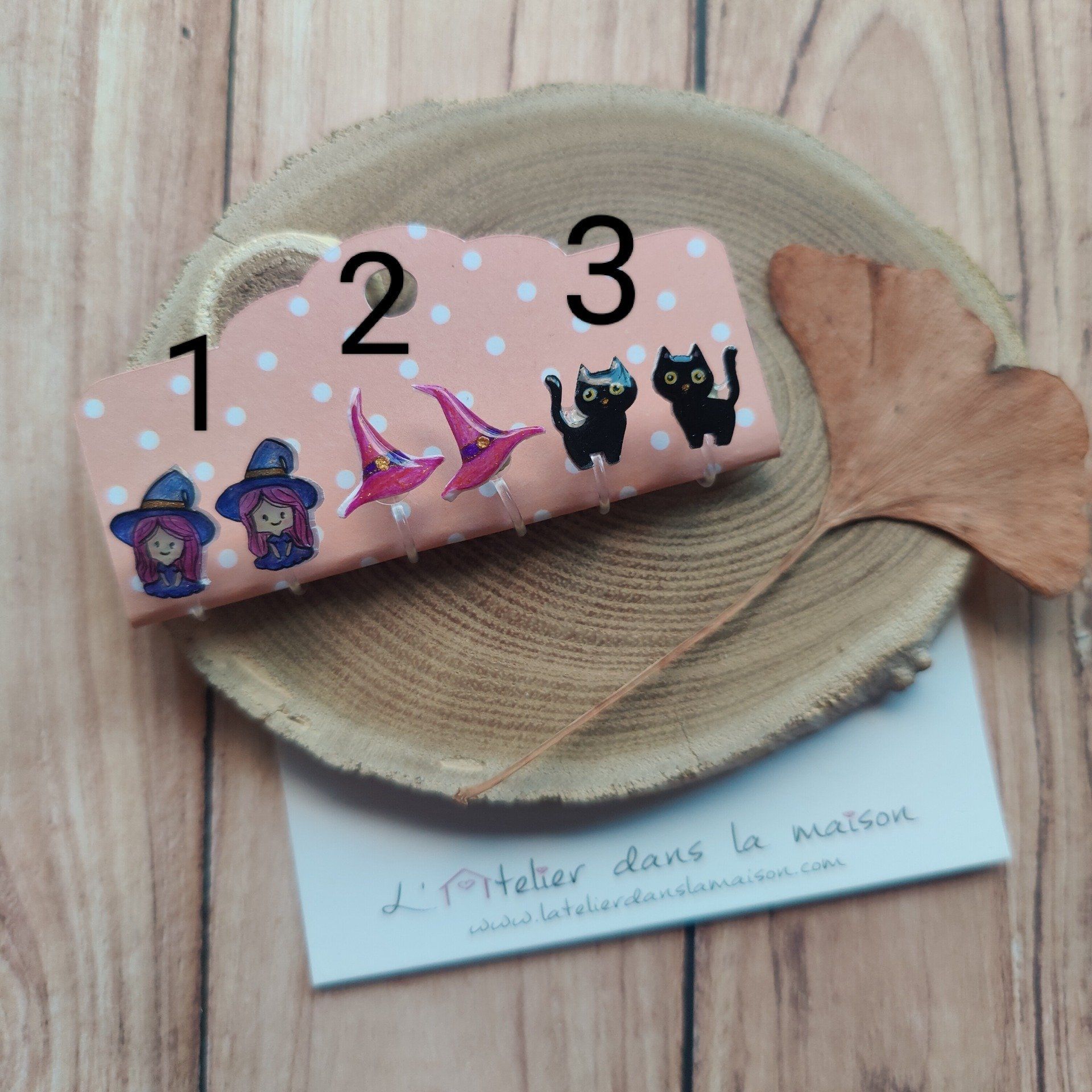 Ces boucles d'oreilles clip sorcière (modèle 1), chapeau de sorcière (modèle 2) ou chat noir (modèle 3) sont légères et confortables ! Idéales pour toutes les oreilles, même sans trous !