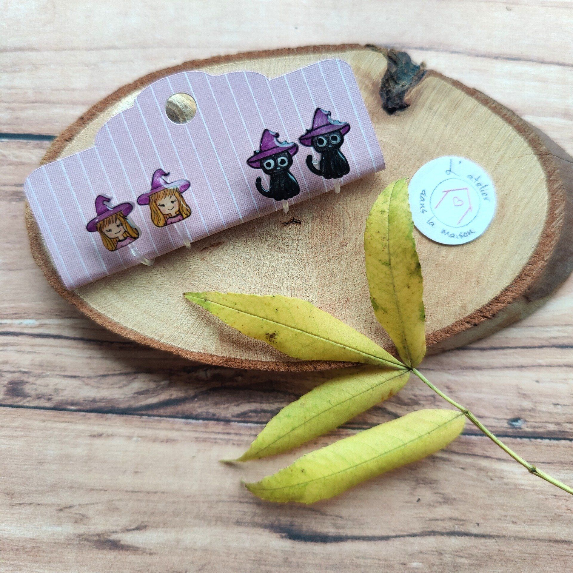 Boucles d'oreilles sorcière ou chat sorcier avec ou sans perçage