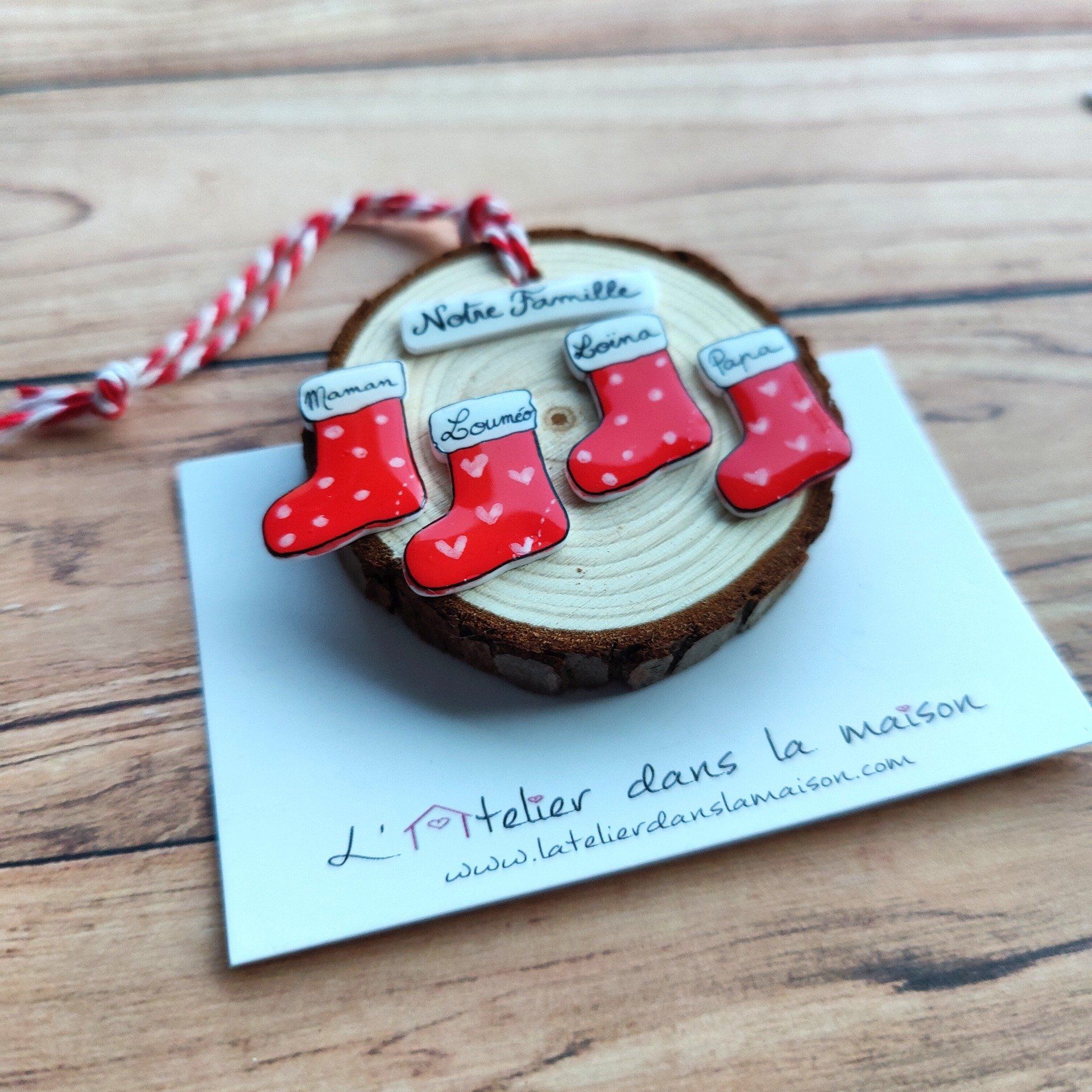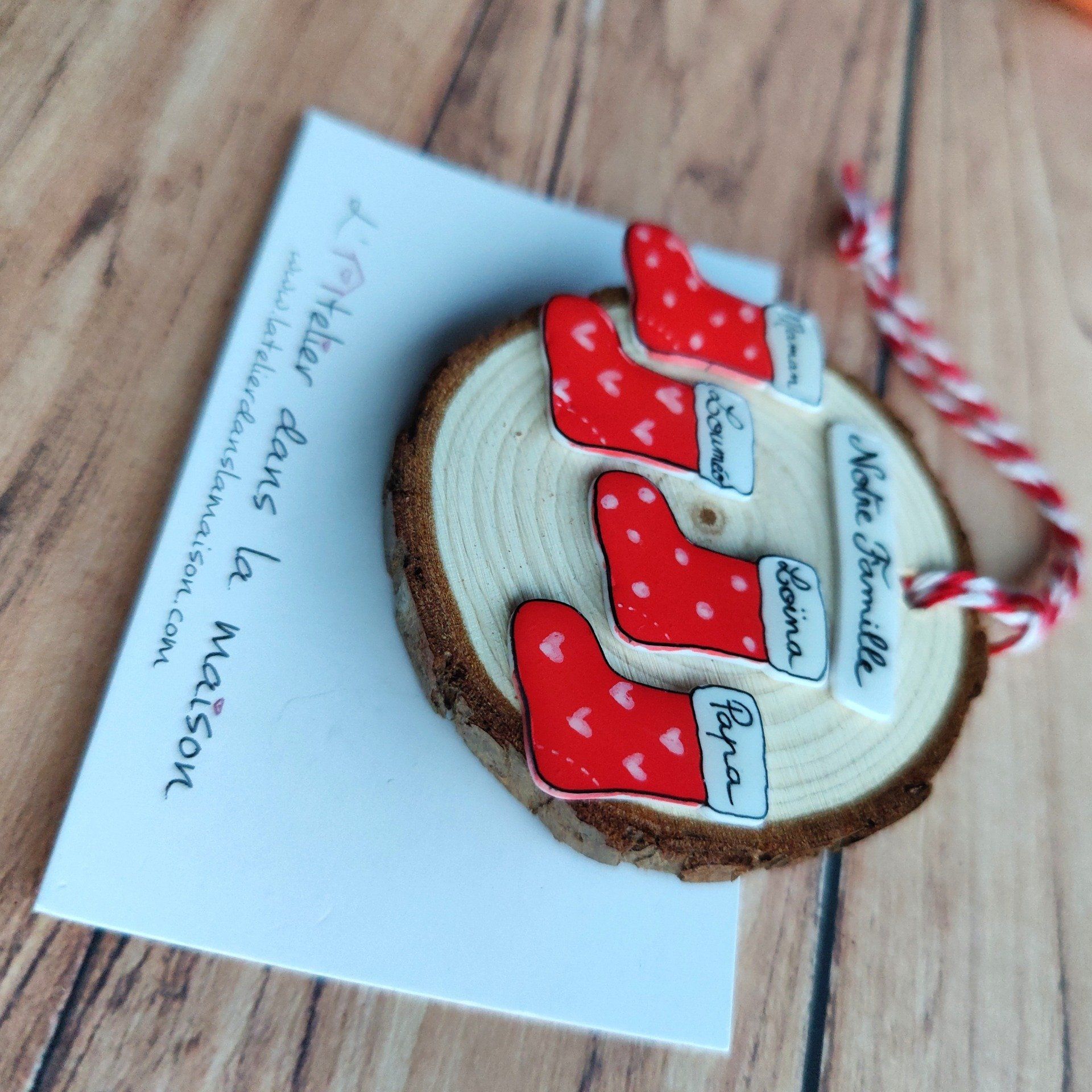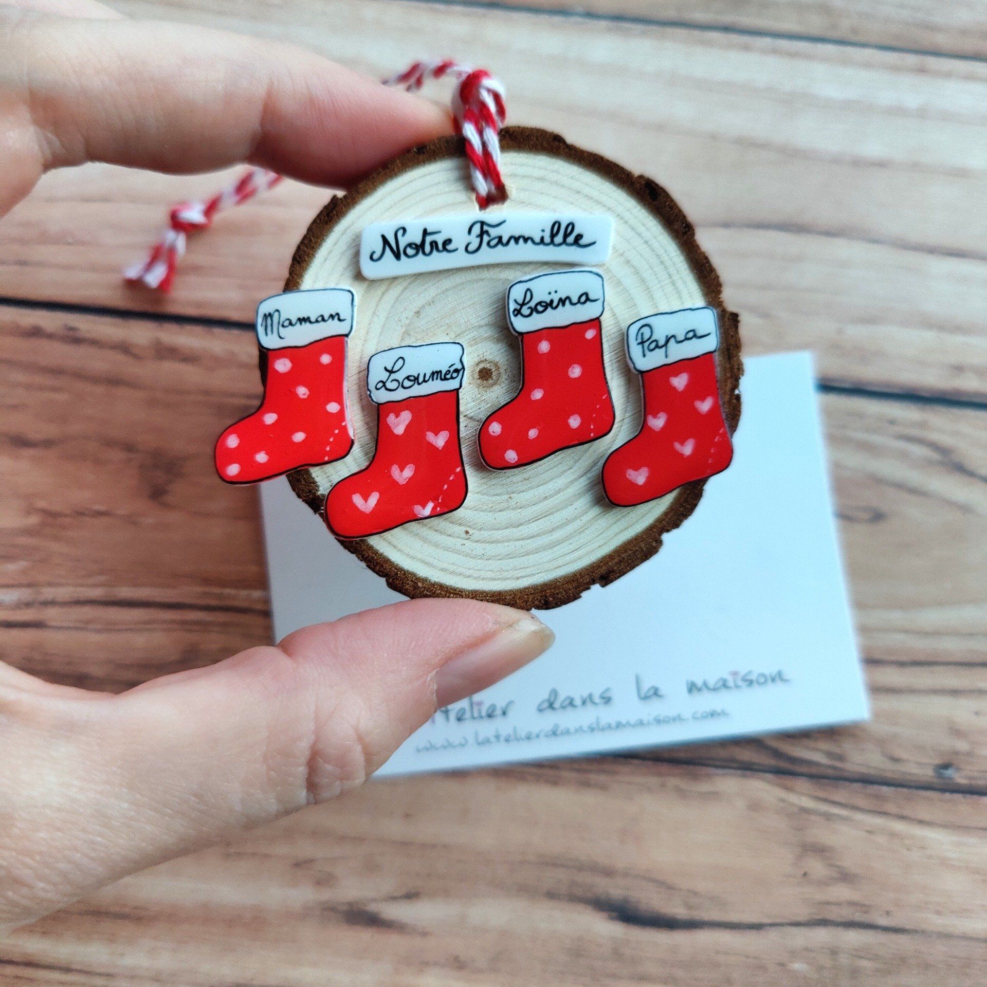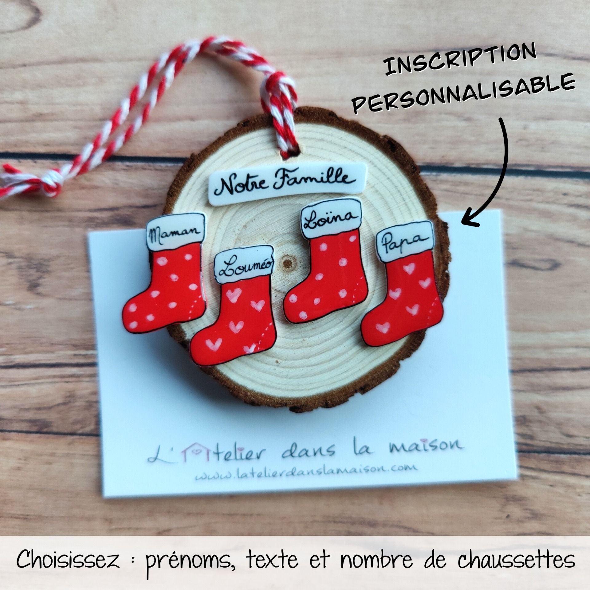 Après c'est à moi de jouer et je fabrique vos petites chaussettes personnalisées que je colle ensuite à leur support en bois naturel.