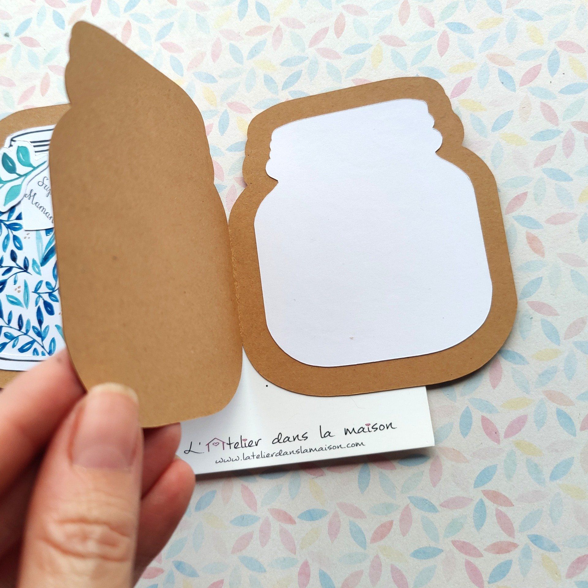 Cette carte bocal s'ouvre et on trouve à l'intérieur un espace pour noter son message !