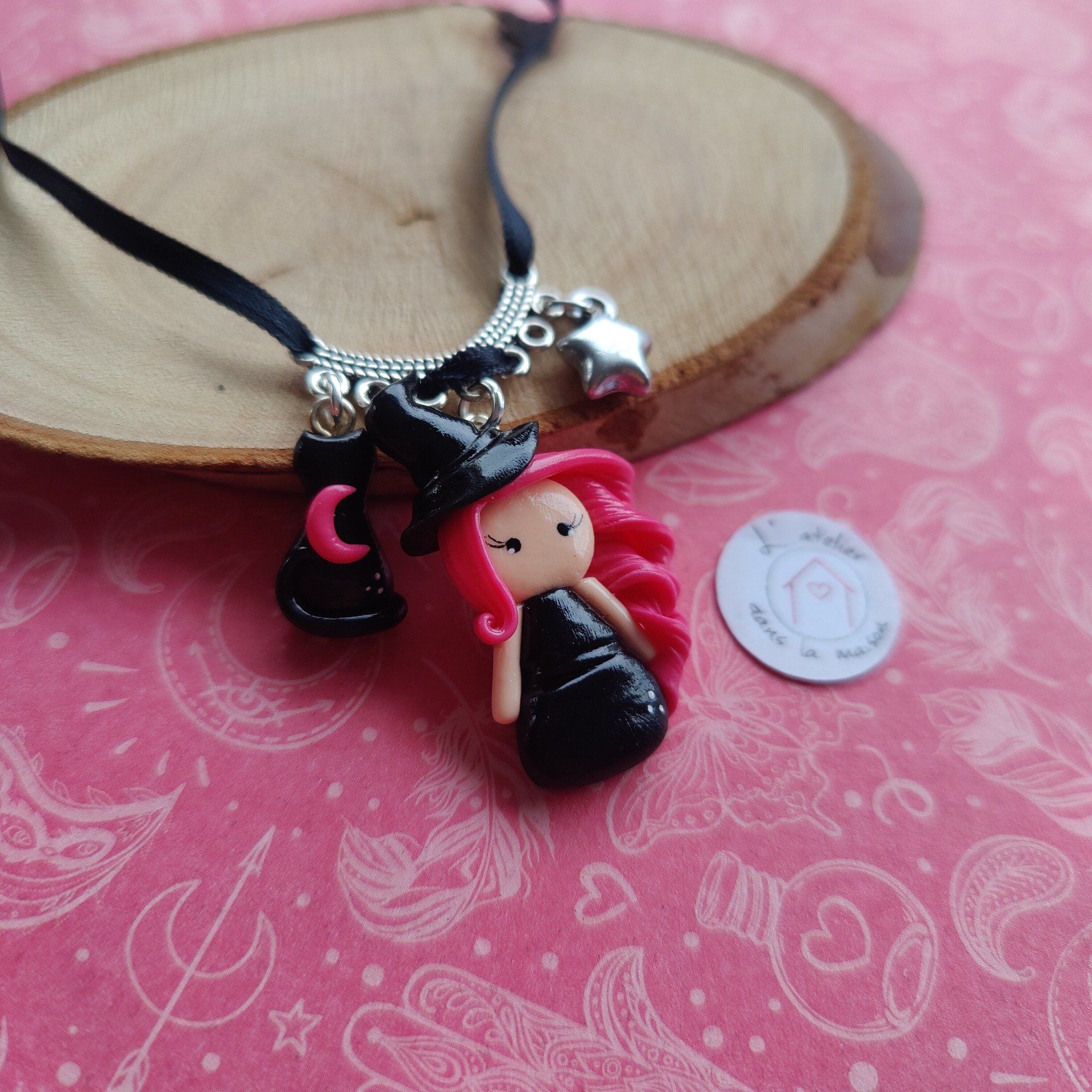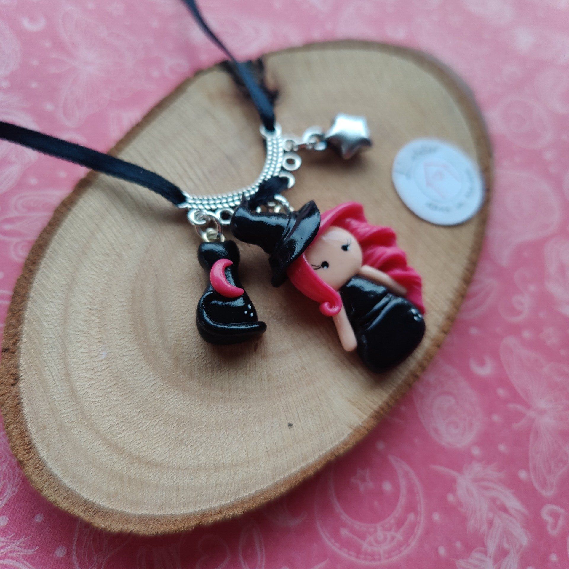 Collier sorcière, chat noir et étoile