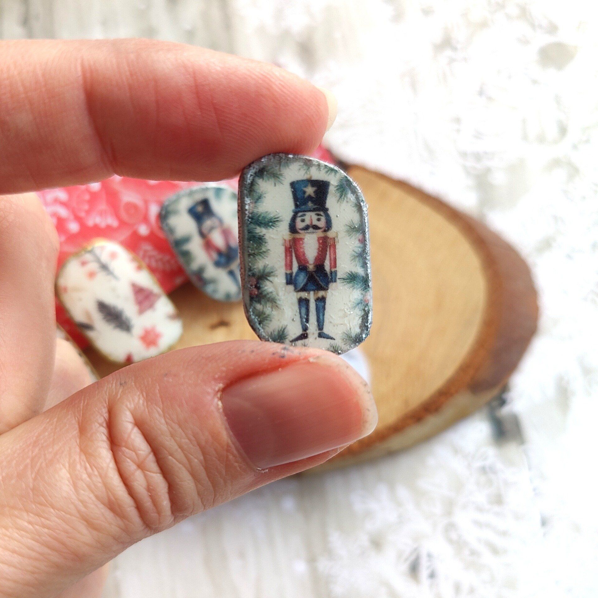 Ces boucles d'oreilles clips faciles à mettre sont disponibles avec des motifs de Noël, contour doré (modèle 1) ou un motif casse-noisette, contour argenté (modèle 2).