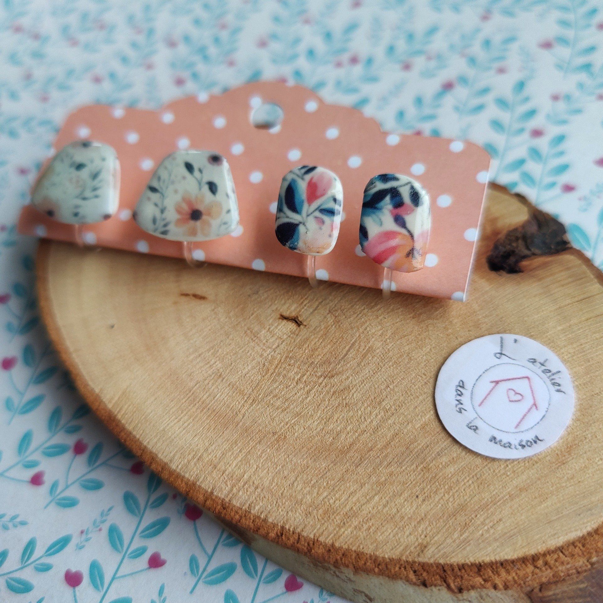 Toutes mes puces d'oreilles sont fabriquées par mes soins et hypoallergéniques puisque montées sur des boucles en silicone.