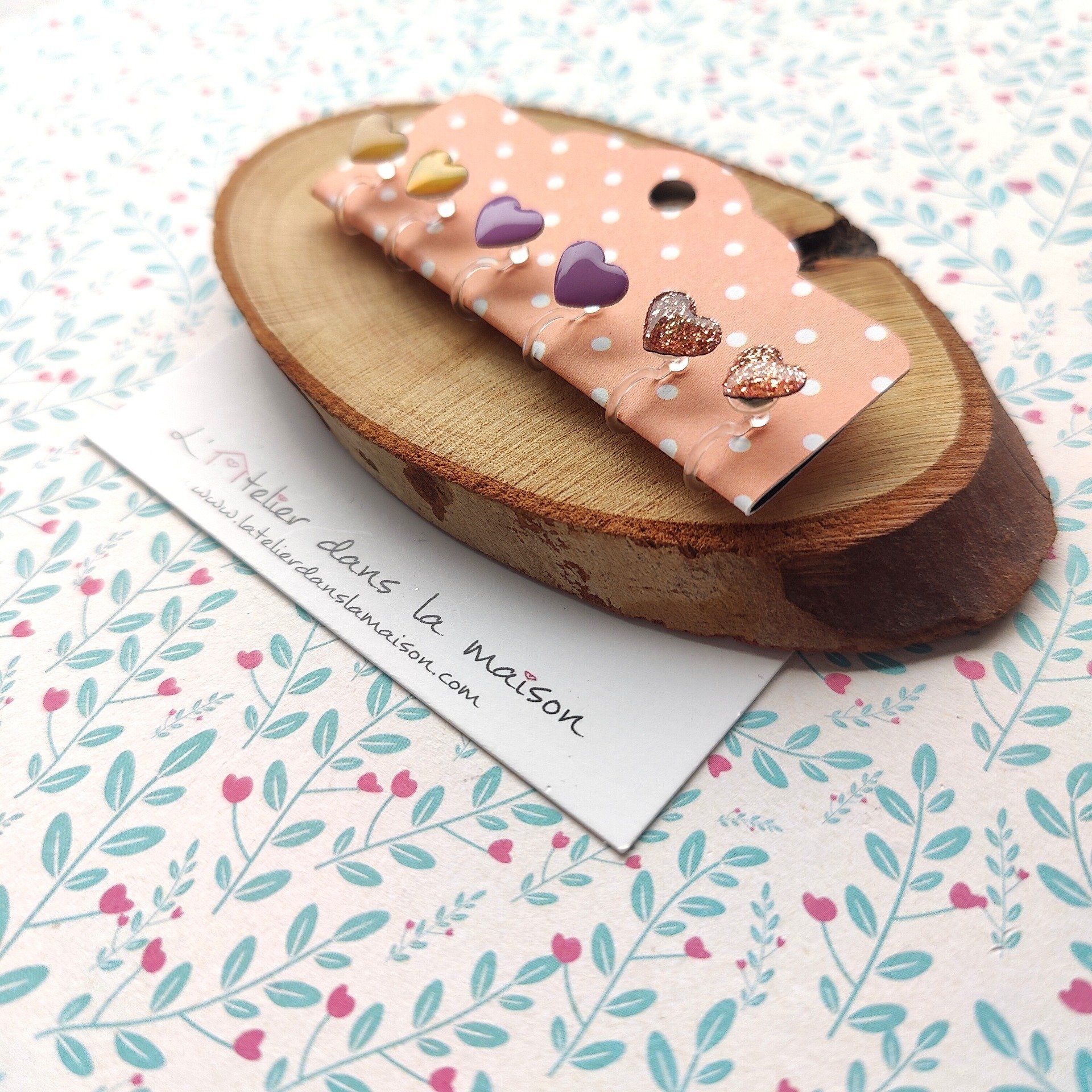 Ces petites puces d'oreilles clips faciles à mettre sont disponibles en doré, violet ou rose pailletté.