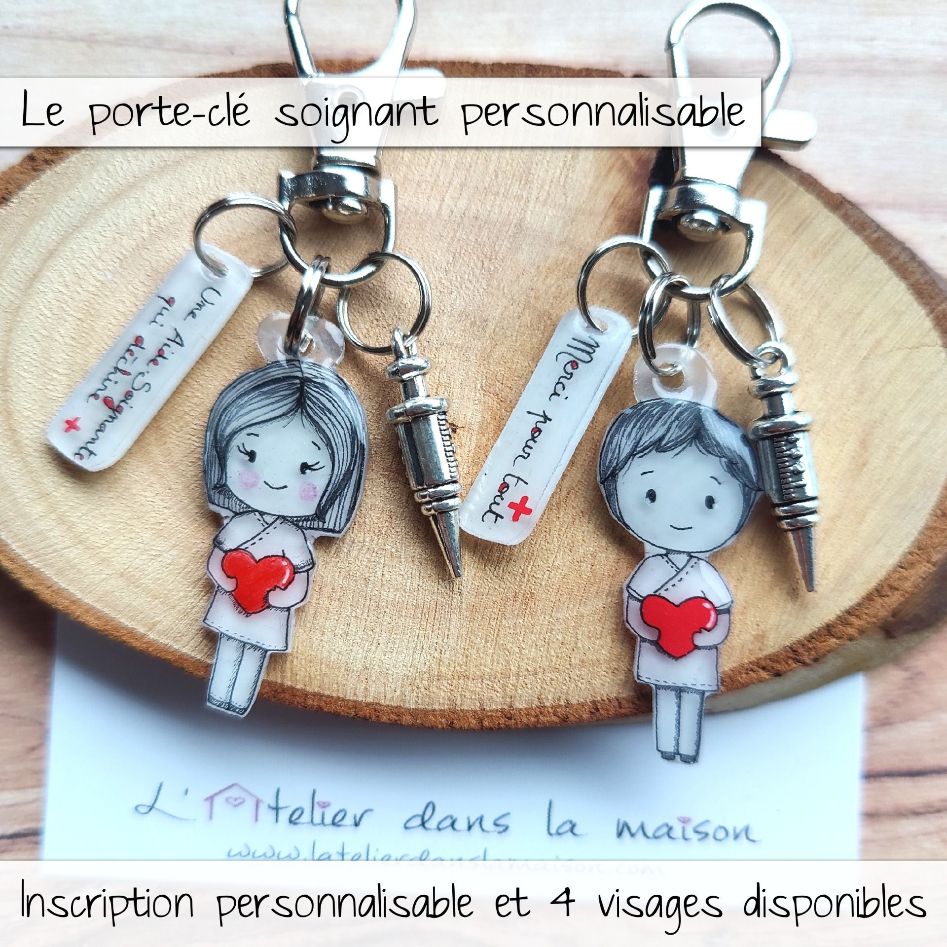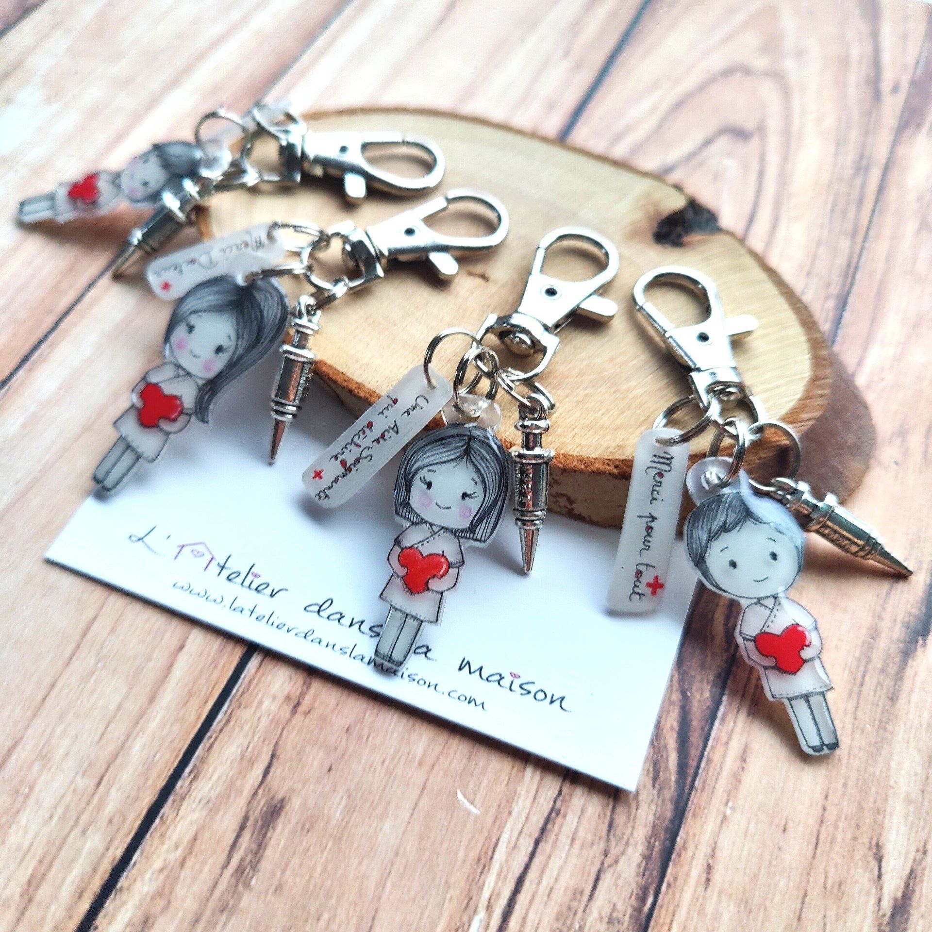 On adore ces porte-clés avec leur soignant qui tient un coeur entre les mains.